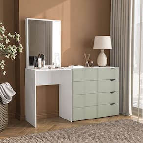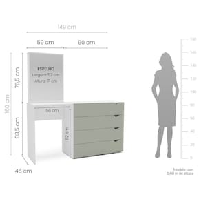A Cômoda Penteadeira com Espelho Porto da Politorno Móveis é a escolha perfeita para quem busca elegância, funcionalidade e otimização de espaço em um único móvel. Com design moderno e sofisticado na cor verde oliva e branca, ela combina a praticidade de uma cômoda com a utilidade de uma penteadeira, ideal para quartos que exigem versatilidade sem abrir mão do estilo. Com 149 cm de largura, 160 cm de altura e 46 cm de profundidade, oferece amplo espaço com 4 gavetas funcionais, um tampo generoso para itens de uso diário e um espelho grande que valoriza ainda mais o ambiente. Fabricada em MDP com acabamento em pintura UV semi fosco, é resistente, durável e fácil de limpar, trazendo beleza e praticidade para sua rotina com o padrão de qualidade da Linha Porto da Politorno. Produto Montado: Sim Acabamento da Gaveta: Pintura UV Altura do Espelho: 71 cm Ambiente Principal: Quarto codigo_ean: 7900288188458 Complexidade da Montagem: Média: pode ser montado por mais de uma pessoa e/ou necessite de maior conhecimento para montagem Cor: Verde/Branco Cor do Produto: Verde/Branco Cor Interna: Branco Escala de Brilho: Semi-Fosco Escala de Brilho da Gaveta: Semi-Fosco Espessura do Espelho: 3 mm Fita Integrada: Sim Formato do Espelho: Retangular Gaveta com Chave: Não Itens Inclusos: 1 Cômoda, Kit Ferragens, Manual de Montagem e Termo de Garantia Largura do Espelho: 53 cm Linha ou Coleção: Porto Manual de Montagem e Instalação: https://product-hub-prd.madeiramadeira.com.br/496253000/documents/28f127e1-cd92-461d-ad61-7180bf6cab013049795622417515691416113.pdf Marca: Politorno Material da Gaveta: MDF/MDP Material do Fundo: MDP Material Principal: MDF/MDP Necessita Montagem: Sim Origem do Produto: Nacional Peso: 32 kg Peso Máximo por Gaveta: 5 kg Possui Espelho: Sim Possui Nichos: Não Possui Pés: Não Possui Portas: Não Possui Prateleiras: Não Quantidade de Espelho: 01 Quantidade de Gavetas: 04 Gavetas Recomendações de Uso, Manutenção e Limpeza: Utilize um pano macio umedecido com água e sabão neutro, seguido de pano seco. Não utilize produtos químicos ou abrasivos para limpeza, pois estes danificam o revestimento do móvel. Sapatas Niveladoras: Não Sistema de Montagem: Cavilha, Parafuso, Minifix e prego. Suporta Até (kg): 15 kg Tipo de Cômoda: Adulto Tipo de Corrediça da Gaveta: Metálica Telescópica Tipo de Fixação do Espelho: Fita Dupla Face Tipo de Puxador da Gaveta: Embutido Marca: Não Informado