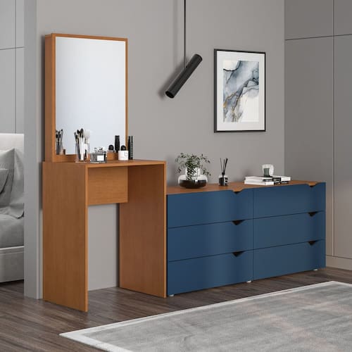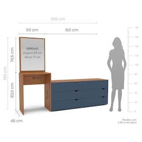 A Cômoda 6 Gavetas Porto da Politorno Móveis é a união perfeita entre design elegante, amplo espaço e funcionalidade para o dia a dia. Com visual moderno e acabamento em pintura UV azul e freijó semi fosco, essa peça da Linha Porto é ideal para quem busca sofisticação e praticidade no quarto. Suas medidas generosas — 209 cm de largura, 160 cm de altura e 46 cm de profundidade — garantem excelente capacidade de armazenamento, com 6 gavetas espaçosas que organizam roupas, acessórios e objetos pessoais com facilidade. Produzida em MDP de alta qualidade, oferece durabilidade, resistência e um acabamento fácil de limpar, tornando-se uma solução completa e estilosa para manter seu ambiente sempre bonito e organizado. Produto Montado: Sim Acabamento da Gaveta: Pintura UV Altura do Espelho: 71 cm Ambiente Principal: Quarto codigo_ean: 7900288189325 Complexidade da Montagem: Média: pode ser montado por mais de uma pessoa e/ou necessite de maior conhecimento para montagem Cor: Azul/Freijó Cor do Produto: Azul/Freijó Cor Interna: Freijó Escala de Brilho: Semi-Fosco Escala de Brilho da Gaveta: Semi-Fosco Espessura do Espelho: 3 mm Fita Integrada: Sim Formato do Espelho: Retangular Gaveta com Chave: Não Itens Inclusos: 1 Cômoda, Kit Ferragens, Manual de Montagem e Termo de Garantia Largura do Espelho: 53 cm Linha ou Coleção: Porto Manual de Montagem e Instalação: https://product-hub-prd.madeiramadeira.com.br/925867730/documents/69e67422-7d1d-4921-afee-76e4718c14283049804622417515693238585.pdf Marca: Politorno Material da Gaveta: MDP Material do Fundo: MDP Material Principal: MDP Necessita Montagem: Sim Origem do Produto: Nacional Peso: 40 kg Peso Máximo por Gaveta: 5 kg Possui Espelho: Sim Possui Nichos: Não Possui Pés: Não Possui Portas: Não Possui Prateleiras: Não Quantidade de Espelho: 01 Quantidade de Gavetas: 06 Gavetas Recomendações de Uso, Manutenção e Limpeza: Utilize um pano macio umedecido com água e sabão neutro, seguido de pano seco. Não utilize produtos químicos ou abrasivos para limpeza, pois estes danificam o revestimento do móvel. Sapatas Niveladoras: Não Sistema de Montagem: Cavilha, Parafuso, Minifix e prego. Suporta Até (kg): 30 kg Tipo de Cômoda: Adulto Tipo de Corrediça da Gaveta: Metálica Telescópica Tipo de Fixação do Espelho: Fita Dupla Face Tipo de Puxador da Gaveta: Embutido Marca: Não Informado