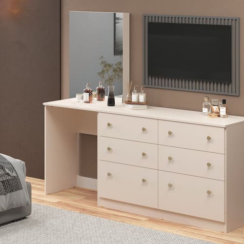 Itens Inclusos: 1 Comoda e Penteadeira , Manual de Montagem, Kit Ferragem