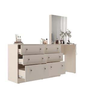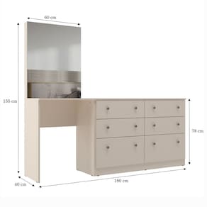 Além da cômoda, conta também com a Penteadeira que da um toque mais sofisticado ao ambiente , otimizando espaço é perfeito para criar um cantinho da beleza único e cheio de charme.