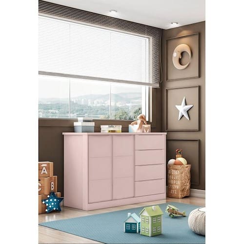 Adquira já a cômoda Pérola Rosê - Phoenix Baby! Produtos de excelente qualidade, fabricados em madeira mdf, a cômoda possui 04 gavetas e 02 portas. Dimensões da Cômoda: (Altura x Largura x Profundidade): 97 x 128 x 52 cm. Características da Cômoda: Material da Estrutura: mdf. Garantia: 3 meses Montagem: Recomendamos que a montagem seja feita por um profissional. Recomendação de Limpeza: Utilize pano levemente úmido. Observações: - Nos responsabilizamos pela entrega dos produtos até onde as rodovias alcançam, entregas fluviais ou aéreas devem ser cotadas a parte - As imagens são ilustrativas, não acompanham objetos de decoração - A montagem será de responsabilidade do comprador. Não nos responsabilizamos, no ato da entrega, por subir escadas/elevadores ou transporte por guincho em apartamentos. Eventuais despesas são de responsabilidade do comprador. - Confira as dimensões do produto e certifique-se de que passará normalmente por supostos elevadores, portas, escadas e/ou corredores de sua residência. Ean: 7894983501950