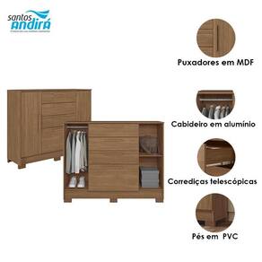 Comoda Pinhais 2 portas 4 Gavetas Jatobá Acetinado - Santos Andirá