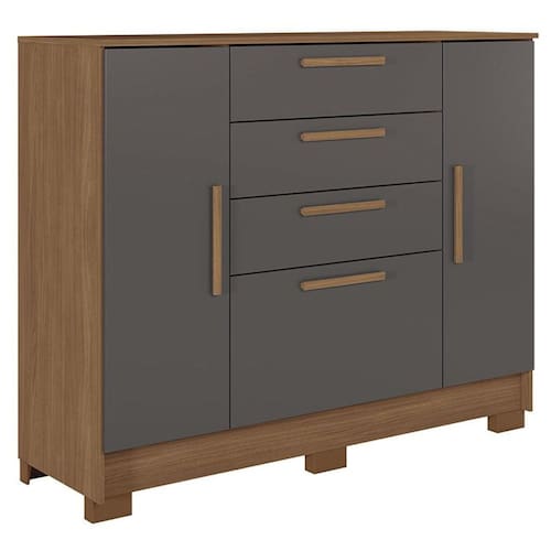 Comoda Pinhais 2 portas 4 Gavetas Jatobá Grafite Acetinado - Santos Andirá