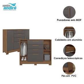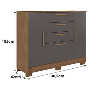 Comoda Pinhais 2 portas 4 Gavetas Jatobá Grafite Acetinado - Santos Andirá