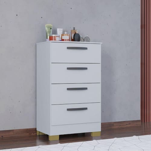 Feita com materiais de alto padrao, apresenta um acabamento impecavel que complementara a decoracao de qualquer quarto ou sala. As quatro gavetas espacosas oferecem excelente capacidade de armazenamento, organizando suas roupas e acessorios de maneira eficiente e pratica. Alem disso, seu design moderno e as varias opcoes de cores disponiveis permitem que ela se ajuste facilmente aos diferentes estilos de decoracao.