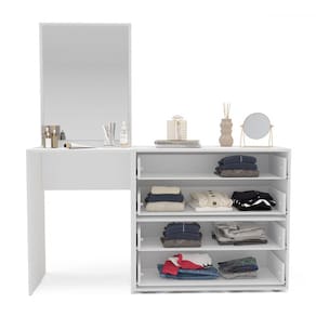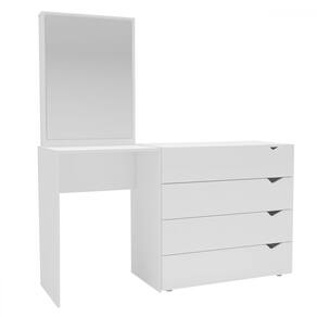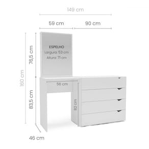 O(a) Cômoda Porto 4 Gavetas com Espelho Branco - Politorno é produzido em MDP na escala de brilho Semi-Fosco, e possui um grau de dificuldade de montagem: Fácil.