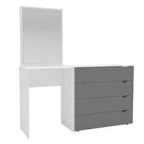 O(a) Cômoda Porto 4 Gavetas com Espelho Cinza/Branco - Politorno é produzido em MDP na escala de brilho Semi-Fosco, e possui um grau de dificuldade de montagem: Fácil.