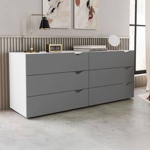 O(a) Cômoda Porto 6 Gavetas Branco/Cinza - Politorno é produzido em MDF e MDP na escala de brilho Semi-Fosco, e possui um grau de dificuldade de montagem: Médio.