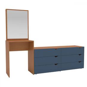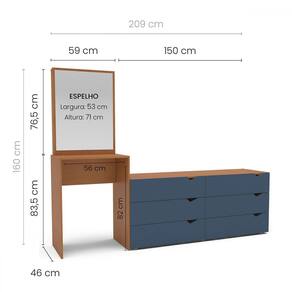 O(a) Cômoda Porto 6 Gavetas com Espelho Azul/Freijó - Politorno é produzido em MDP na escala de brilho Semi-Fosco, e possui um grau de dificuldade de montagem: Fácil.