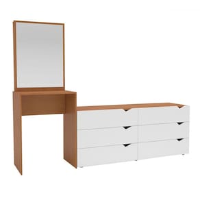 O(a) Cômoda Porto 6 Gavetas com Espelho Branco/Freijó - Politorno é produzido em MDP na escala de brilho Semi-Fosco, e possui um grau de dificuldade de montagem: Fácil.