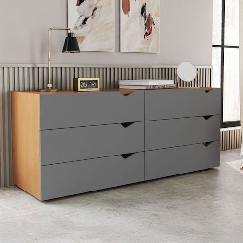 O(a) Cômoda Porto 6 Gavetas Freijó/Cinza - Politorno é produzido em MDF e MDP na escala de brilho Semi-Fosco, e possui um grau de dificuldade de montagem: Médio.