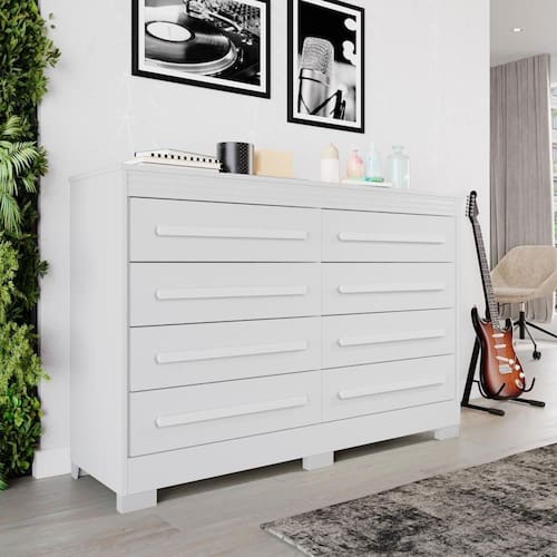 A Cômoda Porto é a combinação perfeita entre funcionalidade, estilo e resistência. Produzida em MDP de 15 mm, ela oferece estrutura robusta e excelente durabilidade, ideal para quem busca um móvel prático com ótimo custo-benefí 8 gavetas espaçosas, equipadas com corrediças telescópicas que garantem abertura suave e segura, esta cômoda proporciona ampla capacidade de armazenamento para roupas, acessórios e itens pessoais. Seu design moderno é valorizado por uma moldura frisada elegante e puxadores em MDF madeirado, que adicionam um toque sofisticado ao escala de brilho fosca, pés em PVC resistentes (já inclusos no produto) e acabamento de qualidade, a Cômoda Porto se adapta facilmente a diferentes estilos de quarto seja de casal, solteiro ou infantil.