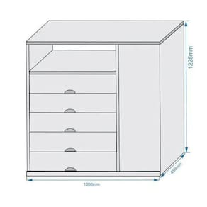 Caracteristicas do produto: Marca: MadeMarcs Modelo: Portugal Materiais: MDF e MDP (Madeira de Reflorestamento) Acabamento: Verniz UV Escala de Brilho: Semi-Brilho Sistema de Montagem: Parafuso, Minifix e Cavilha Quantidade de Gavetas: 05 Quantidade de Portas: 01 Quantidade de Prateleiras: 03 internas Corredicas: Telescopicas Puxadores: Madeira