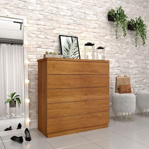 Forma simples de deixar a rotina no dormitório mais prática, a Cômoda Premium é um complemento primoroso tanto para a décor quanto para a organização. Ideais para as peças que ficam dobradas, as 5 gavetas são reforçadas pelo compartimento lateral e pelo tampo, que pode apoiar caixas organizadoras para aqueles objetos menores ou até mesmo alguns enfeites que vão deixar o espaço com a sua cara. Para coroar toda essa usabilidade, a estrutura robusta ganha beleza da coloração sóbria que forma um móvel harmônico e cheio de benefícios para a sua decoração - daí é só escolher o restante do mobiliário e criar o cantinho relax perfeito.
