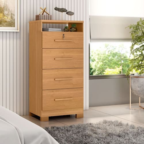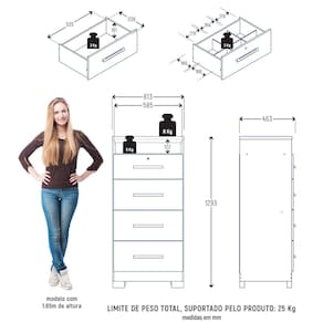 Conheça a Cômoda Primordial Max, a combinação perfeita de estilo e funcionalidade para seu espaço! Com 4 gavetas equipadas com corrediças telescópicas, ela oferece um deslizar suave e durável. A 1ª gaveta vem com divisórias e chave, garantindo organização e segurança para seus itens mais preciosos. Seus puxadores em MDF e o tampo em MDP de 25mm garantem robustez e elegância. O acabamento interno é igual ao externo, proporcionando um visual impecável em todos os ângulos. Transforme seu ambiente com a sofisticação e praticidade da Primordial Max! Acabamento da Gaveta: Pintura Texturizada UV Ambiente Principal: Quarto Complexidade da Montagem: Alta: deve ser montado por um montador especializado Cor: Cinamomo Cor do Produto: Cinamomo Cor Interna: Cinamomo Escala de Brilho: Fosco Escala de Brilho da Gaveta: Fosco Gaveta com Chave: Sim Itens Inclusos: 1-Cômoda Primordial MAX + Manual de Montagem Linha ou Coleção: Primordial Manual de Montagem e Instalação: https://product-hub-prd.madeiramadeira.com.br/929535/documents/8235be9a-46c5-4212-8821-3a25c8ff8c5e2174651573817220158694656.pdf Material da Gaveta: MDP Material do Fundo: MDP Material do Puxador da Gaveta: MDF Material dos Pés: Plástico Material Principal: MDP Necessita Montagem: Sim Origem do Produto: Nacional Pés Reguláveis: Não Peso: 35,5 kg Peso Máximo por Gaveta: 3 kg Possui Espelho: Não Possui Nichos: Não Possui Pés: 04 Possui Portas: Não Possui Prateleiras: Não Possui Rodízio: Não Quantidade de Gavetas: 04 Gavetas Recomendações de Uso, Manutenção e Limpeza: Limpar com flanela ou pano macio seco, não utilizar produtos abrasivos, desengordurantes, álcool ou qualquer outro produto químico. Não expor o produto diretamente à luz solar e à umidade Sapatas Niveladoras: Não Sistema de Montagem: Parafusos auto atarraxantes, cola, cavilhas, pregos Suporta Até (kg): 25 kg Tipo de Corrediça da Gaveta: Metálica Tipo de Puxador da Gaveta: Externo