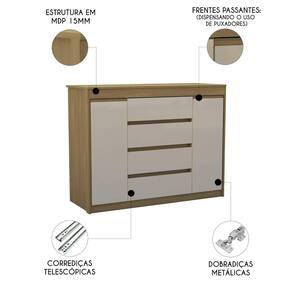 Cômoda Quarto 123cm com 4 Gavetas 2 Portas Samira Freijó/Mocca L01 - Mpozenato