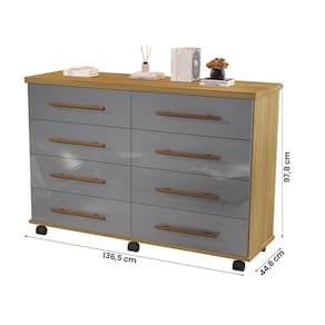 Fabricante: Móveis Primus | Altura do Produto Montado: 97,8 | Profundidade Montado: 44,8 | Largura Montado: 136,5 | Altura do Produto embalado: 19,5 | Comprimento do produto embalado: 138 | Largura do Produto Embalado: 46,5 | Peso do Produto: 59,9 | Peso do Produto Embalado: 59,9 | Material para Filtro: MDP | Estado de Origem: SP | Descrição do Tamanho: 97,8 x 136,5 x 44,8 cm | Produto: Cômoda Jade 8 Gavetas | Garantia em Meses: 03 meses de garantia para defeitos de fabricação | Tonalidade: Multicolorido | Profundidade: 44,8 cm | Quantidade de gavetas: 8 | Quantidade de portas: 0 | Acabamento: Pintura UV | Altura: 97,8 cm | Inclui acessórios de montagem: Sim | Inclui manual de montagem: Sim | Material das dobradiças: N/A | Requer montagem: Sim | Tipo de móvel: Cômoda | É desmontável: Não | Com corrediças: Sim | Com portas: Não | Com prateleiras: Não | Material das corrediças: Metálicas (telescópicas) | Com prateleiras ajustáveis: Não | Material das gavetas: MDP | Largura: 136,5 cm | Material do corpo: MDP | Peso: 59,9 kg | Quantidade de prateleiras: 0 | Modelo: Cômoda Jade 8 Gavetas Cor: Cinza/Mel