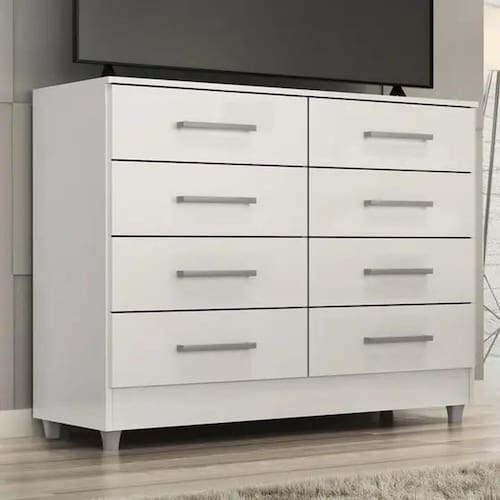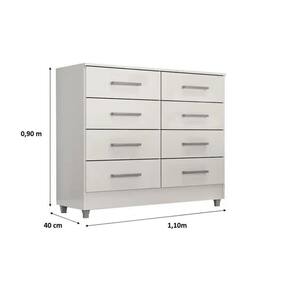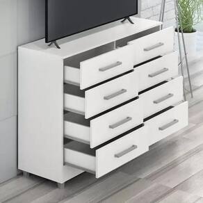 Com 8 gavetas dispõe de um design sofisticado é própria para pessoas exigentes com organização. As gavetas possuem CORREDIÇAS METÁLICAS, fazendo assim com que a gaveta não caia na hora que você for utilizar, evitando acidentes com crianças. O móvel suporta pesos de até 7kg em suas gavetas e 20kg no tampo suficiente para acomodar televisores, além disso acompanha pezinhos para melhor limpeza e durabilidade do produto. As gavetas são espaçosas e comportam um bom volume de roupas e acessórios em seu interior. Possui acabamento Touch Alto-Relevo ou Alto Brilho UV e Semibrilho parte interna. Tem um design moderno que ao mesmo tempo atende muito bem as reais necessidades de uma ou duas pessoas. Além desses detalhes é de fácil montagem.