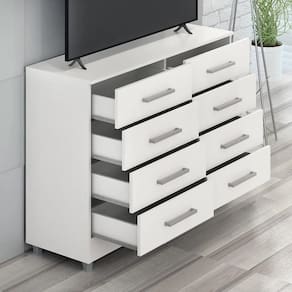 *8 gavetas com corrediças metálicas*Puxadores em PVC para facilitar a abertura e fechamento.*Suporta até 7kg em suas gavetas e 20kg no tampo.*Fabricado em MDP de 12mm e15mm.*Acabamento Touch Alto-Relevo ou Alto Brilho UV e Semibrilho parteinterna.*Pés inclusos. Marca: Não Informado