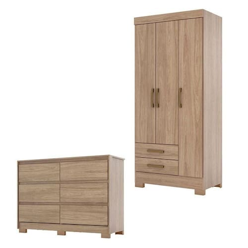 Cômoda Ravenna e Guarda Roupa Solteiro Sensi Jequitibá Brilho - Henn