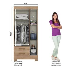 Guarda Roupa Solteiro Sensi Jequitibá Brilho Briz Móveis