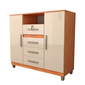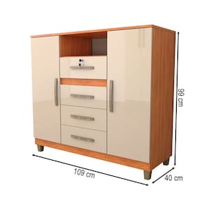 O(a) Cômoda Angra 2 Portas 4 Gavetas Cinamomo/Off White - Fellicci é produzido em MDP na escala de brilho Brilho e Semi-Brilho, e possui um grau de dificuldade de montagem: Médio.