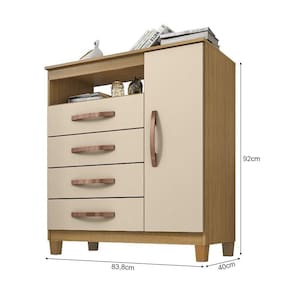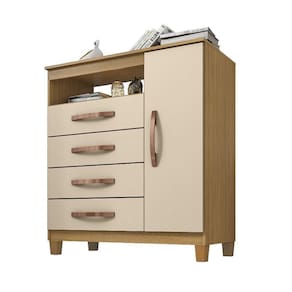 AS IMAGENS SÃO MERAMENTE ILUSTRATIVAS E PODEM SOFRER VARIAÇÕES DE COR E PEQUENOS DETALHES DE ACORDO COM O SEU MONITOR, ILUMINAÇÃO DO AMBIENTE E ATÉ MESMO A SUA PERCEPÇÃO VISUAL.CÃmoda ReforÃada Miami 1 Porta e 4 Gavetas Carvalho Off White