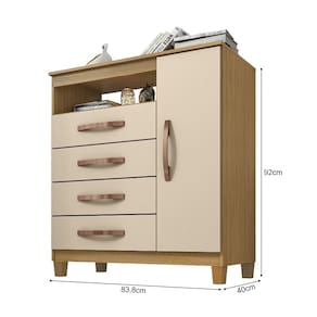 Aposte na praticidade com a Cômoda Miami, ideal para quem precisa de organização e um toque de modernidade. Seus pés garantem estabilidade, enquanto os puxadores e as gavetas com corrediças telescópicas proporcionam estilo e praticidade.