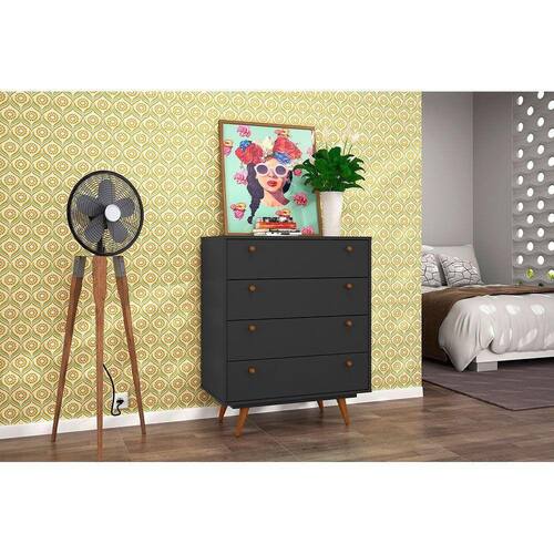 Cômoda Retrô 35 Preto Ac / Preto AcCômoda Retrô 35, possui gavetas com corrediças metálicas, puxadores de madeira, possui pés palito em madeira trazendo o design retrô.Cor: Preto Ac/Preto AcEscala de brilho: AcetinadoDimensões (AxLxP): 101,2 x 82 x 45,5cmMaterial da estrutura: MDP 15 MM e MDF 15/25 MMAcabamento: UVPeso do produto montado KG: 42,5KgNecessita de montagem? SimQuantidade de prateleiras: -Quantidades de gavetas: 4Quantidade de puxadores: 8Material dos puxadores: MadeiraQuantidade de pés: 4Tipo dos pés: Pé palito em madeiraAltura os pés: 17cmSuporta até (KG): 30KgPossui manual de montagem: SimRecomendação de limpeza: Com pano umedecido. Não aplicar lustra móveis.Volumes: 2Garantia: 3 mesesCÃmoda Retrà 35 Preto Ac / Preto Ac