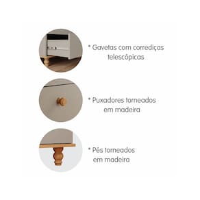 Seguindo o estilo lúdico, essa cômoda é perfeita para quem deseja um produto mais compacto e cheio de estilo. Possui nicho superior para organizar objetos de uso diário e 03 gavetas grandes com corrediças telescópicas que proporcionam deslizamento suave, maior abertura e melhor acesso às roupas. Os puxadores e pés são torneados em madeira maciça e conferem um charme especial ao produto. O tampo possui bordas arredondadas que recebem pintura em lacca com tinta atóxica e as peças retas recebem pintura UV também com tinta e verniz atóxicos.Fabricada com matéria-prima 100% MDF, um material ecologicamente correto e de ótima durabilidade e resistência;