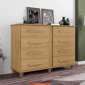 A Cômoda Geórgia possui um design elegante e charmoso, com excelente espaço e pode ser utilizado tanto no quarto, quanto no closet. Características: Estrutura em MDF e MDP 8 Gavetas Tampo e base em MDF 18mm Corrediças telescópicas Puxadores em MDF