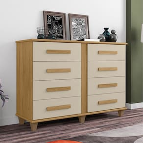 A Cômoda Geórgia possui um design elegante e charmoso, com excelente espaço e pode ser utilizado tanto no quarto, quanto no closet. Características: Estrutura em MDF e MDP 8 Gavetas Tampo e base em MDF 18mm Corrediças telescópicas Puxadores em MDF.
