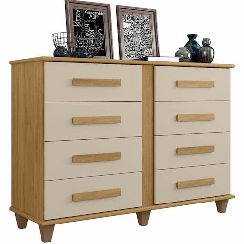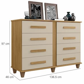 A Cômoda Geórgia possui um design elegante e charmoso, com excelente espaço e pode ser utilizado tanto no quarto, quanto no closet. Características: Estrutura em MDF e MDP 8 Gavetas Tampo e base em MDF 18mm Corrediças telescópicas Puxadores em MDF.