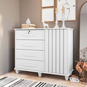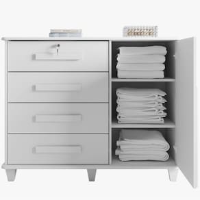 A Cômoda Grécia ripada é essencial para quem quer um design moderno no ambiente, sem deixar a praticidade do dia a dia de lado! Ela conta com 4 gavetas espaçosas para manter melhor a organização, sendo uma com tranca e chave, duas prateleiras internas que auxiliam na hora de guardar seus sapatos e outros pertences. Além de possuir a opção de detalhe ripado na hora da montagem e pés resistentes que não agridem o chão e facilitam na hora da limpeza.