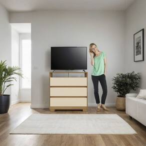 Com estrutura em MDP de alta qualidade e acabamento em pintura UV com brilho fosco, oferece durabilidade e um visual elegante. Seu tampo robusto permite o uso como rack, suportando TVs de até 39 polegadas com estabilidade. A prateleira central é ideal para acomodar aparelhos eletrônicos, como videogames e caixas de som, enquanto as três gavetas com corrediças telescópicas oferecem amplo espaço para guardar roupas, acessórios ou objetos do dia a dia com facilidade.