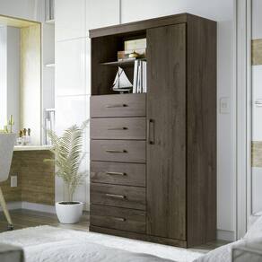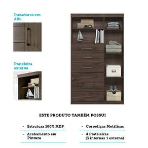 Modelo: Marabá 01 porta com 03 prateleiras 06 amplas gavetas com corrediças metálicas 01 ampla prateleira externa Puxadores em abs