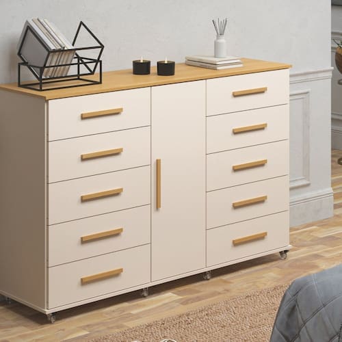 Com 10 gavetas equipadas com Trilho Telescópico, você terá amplo espaço para armazenar roupas, acessórios e objetos pessoais de forma organizada e acessível. Além disso, a presença de uma porta confere um toque de sofisticação ao móvel, permitindo a guarda de itens maiores ou mais delicados com segurança.