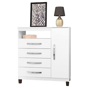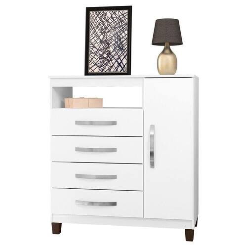 Cômoda Sapateira 1 Porta 4 Gavetas Cannes Branco Incorplac