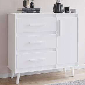 Cômoda Sapateira Mila, ideal para compor quartos com modernidade e elegância. Produzida em MDP (12/15mm) com acabamento em pintura UV. Conta com 03 gavetas, 01 porta, prateleira interna, corrediças telescópicas, dobradiças metálicas, puxadores em plástico e pés estilo retrô. Este produto será entregue em 01 volume.