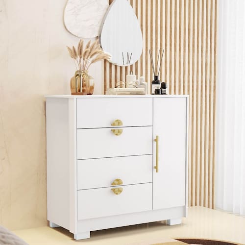 Cômoda Sapateira 4 Gavetas 1 Porta Ilha Bela Branco - Vila Rica