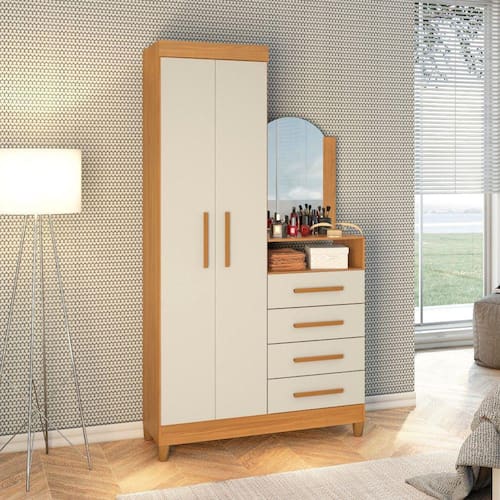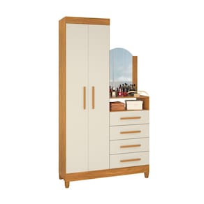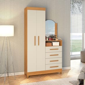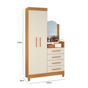 Características: Estrutura MDP 12 mm 2 Portas MDP 15 mm 4 Gavetas com corrediças metálicas Espelho medindo 59x33,5x3 cm (AxLxP) Puxadores em MDF revestido 1 Cabideiro plástico 1 Prateleira 4 Pés