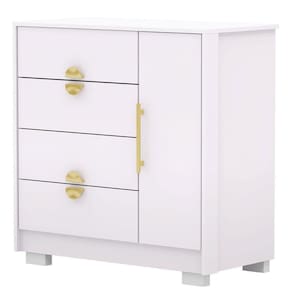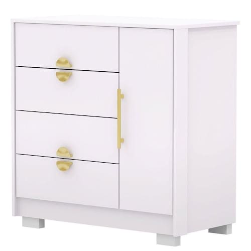 Características da Cômoda Sapateira Clarabella: - Produzido em MDP; - 1 porta com dobradiças metálicas; - 4 gavetas com corrediças metálicas; - Prateleira interna; - Pés opicionais na hora da montagem; - Não acompanha objetos de decoração; - Foto interna meramente ilustrativa para ver a divisão do produto; - Montagem por conta do comprador;