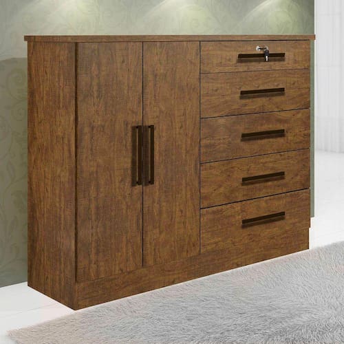 A Cômoda com Sapateira 5 Gavetas - Modelo Cronus é perfeito para a organização de suas roupas. Além disso, possui uma Sapateira com amplo espaço, produzida em Madeira MDP e tampo de MDF. Então, compre agora sua Cômoda.