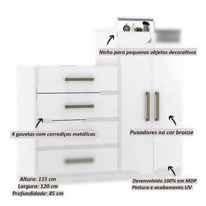 Cômoda Sapateira Ambiente Áurea Branco Brilho Demóbile