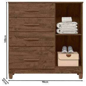 Começou a montar o seu quarto? Então apresentamos para você esta bela cômoda da linha Vênus. Com um design versátil, permite duas opções de cores na hora da montagem: castanho wood/ avelã, perfeito para combinar com diferentes estilos de quarto. Contando com quatro gavetas é equipada com corrediças metálicas, garantindo um deslizamento mais suave e seguro. Os puxadores em MDF complementam o visual moderno. Com pés em PVC garante mais estabilidade e facilidade na hora da limpeza. Fabricado pela Moval, é desenvolvido em MDP de alta qualidade, sendo a escolha perfeita para deixar seu ambiente mais organizado, prático e cheio de charme, aproveite!
