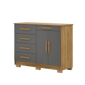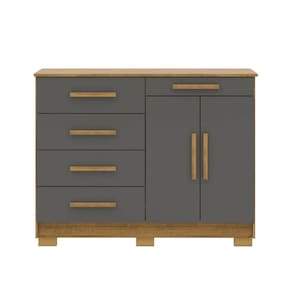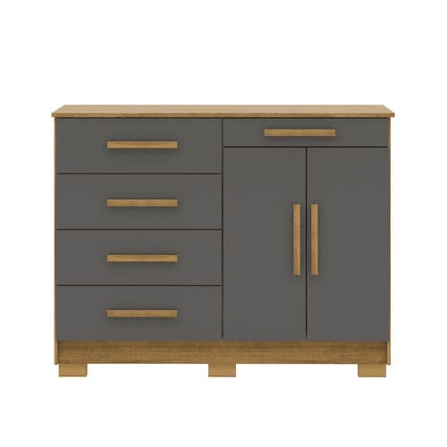 - Largura: 122 cm; - Altura: 96,5 cm; - Profundidade: 47 cm; - Material da estrutura: MDP 12mm e 15mm ; - Frente de MDP 15mm de expessura; - Corpo de MDP 12mm de expessura; - Fundo de MDF 03mm de expessura; - Puxador de MDF 250mm; - Corrediça Metálica;