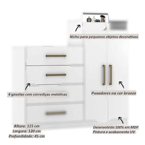 Cômoda Sapateira Áurea Branco Brilho Demóbile