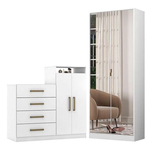 Cômoda Sapateira Áurea e Armário Multiuso Grife Branco Demóbile