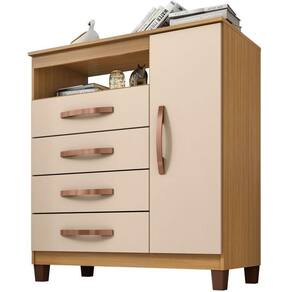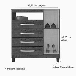 Características Gerais do Produto: - Altura: 92,20 cm - Gavetas: 4 Gavetas - Ideal para: Quarto - Informações Adicionais: - Não nos responsabilizamos pela montagem dos produtos. Todos os produtos acompanham acessórios para que sejam montados. - Não nos responsabilizamos, no ato da entrega, por subir escadas/elevadores ou transporte por guincho em apartamentos. Eventuais despesas são de responsabilidade do comprador; - Confira as dimensões deste produto e certifique-se de que passará normalmente por supostos elevadores, portas, escadas e/ou corredores de sua residência; - Não aceitamos devolução de produtos com caixas violadas ou materiais danificados, confira a quantidade de volumes e se o que está sendo entregue corresponde com a mercadoria adquirida, não aceitamos devolução após o prazo de arrependimento de 7 dias corridos. - Largura: 83,70 cm - Material: MDP - Pintura: Pintura Uv - Portas: 1 Porta - Profundidade: 40 cm - Tipo de Porta: Porta de Bater - Informações Adicionais: Prateleira recomendado 5kg, Gavetas recomendado 3 kg, Em seu tampo recomendado 8 kg.