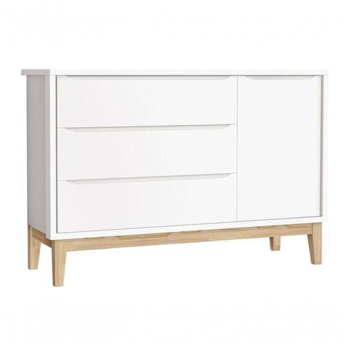 Evidênciando um ar retrô com o modelo de seus pés em madeira maciça, a Cômoda Sapateira Classic New - MóveisAqui possui um desing clean que combina com vários estilos de decoração. É perfeita para a organização das roupinhas e acessórios do seu baby, proporciona um espaço para armazenamento e com divisória interna, para que a organização do dia-a-dia possa ser mais fácil. Possui puxadores embutidos, as aberturas ocorrem através de recortes no MDF que possibilitam o perfeito encaixe da mão para que possa abrir as portas e gavetas.
